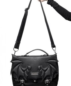 You prefer the streets empty around 3 am – when the batwings flutter across the moon; ‘Le Fey’ messenger bag in premium faux leather with statement wing-applique front is a total MUST-HAVE! The perfect size for yer busy lifestyle, day or night – including buckle detailing, zip closure, inner zip pocket and an adjustable shoulder strap for ultimate comfort.