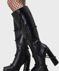 – Knee-high twist on our classic ‘gloomed and doomed’ ankle boots.
