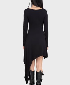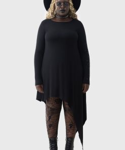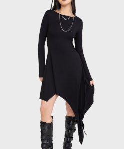 – Exaggerated asymmetric hem.
