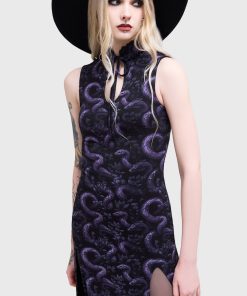 – Unique purple snake print.