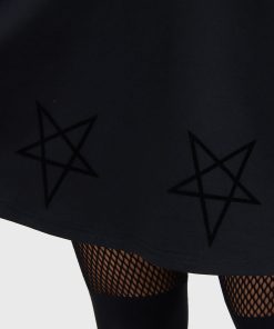 – Velvet flocking pentagram print along hem.