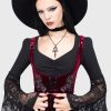 – Velvet flocking pentagram print along hem.
