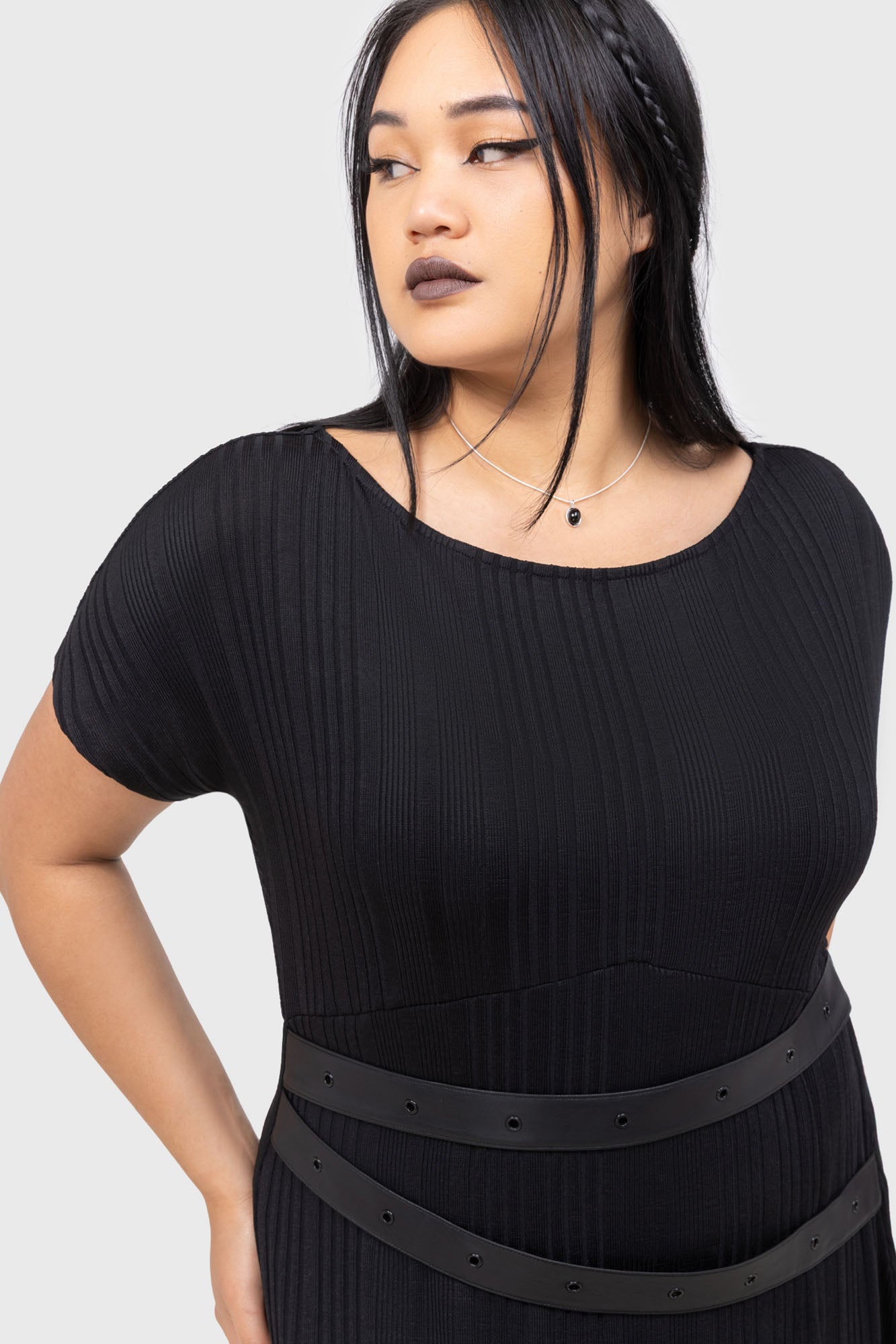 – PU waist straps with decorative studs.