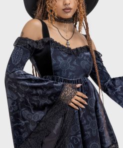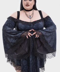 – Dramatic flared sleeves.